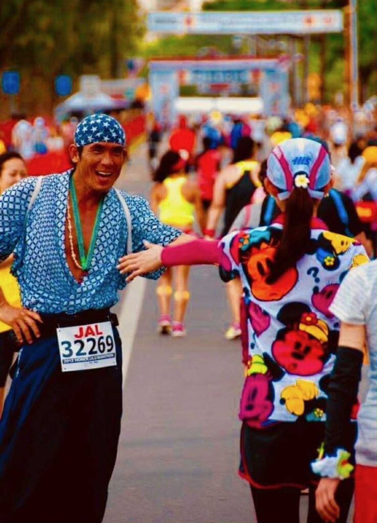 Mahalo~~~ GETTAMANさん!今年も本当にありがとうございました!27回目のご参戦。「軽々と30回まで頑張ってください」なんて、とても言えない下駄ばきで挑む過酷さを知る“限界ランナー”。ここ数年、毎年お会いする中で、昨年「来年はカリーンさんも走ろう!」と“言霊”を吹き込んでいただき、気がつけば今年――応援だけのつもりが、10Kではありましたが、完歩していました。そしてその後応援でゴール前にいた一瞬の私の姿にも気付いてくださるというGETTAMANさんというその存在に今年も圧倒され続けました。健康界の鬼才!!心と体をデザインするヒューマンアーティストGETTAMAN 。日本各地でその凄さに出会うことができますが、ぜひ次回のホノルルマラソンで、マカナリスナーの皆さんにも!〜来年このマカナでチームを作り走る・歩くことができたら?!とインタビュー後なんとなくまた思わされているのです。一緒に走る?歩く? <Colleen>