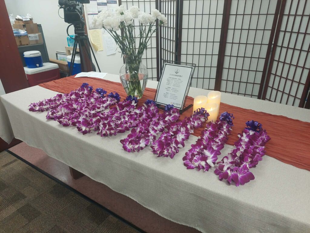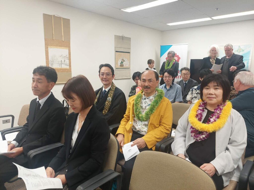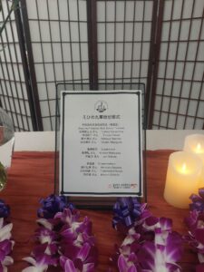 This year, attendees included two families of the victims from Uwajima—four family members in total (Mr. and Mrs. Mizuguchi, and the Makizawa sisters)—as well as Mr. Munenobu Date, the 13th head of the Uwajima Date family; eight representatives from the Uwajima Lions Club; one physician and five medical residents from Uwajima City Hospital, who were participating in an exchange program between the hospital and the University of Hawaii’s John A. Burns School of Medicine.