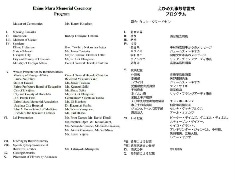 Ehime Maru Memorial Associationの詳細については、以下のウェブサイトをご覧ください。https://www.jashawaii.org/ehime-maru-memorial-association-1