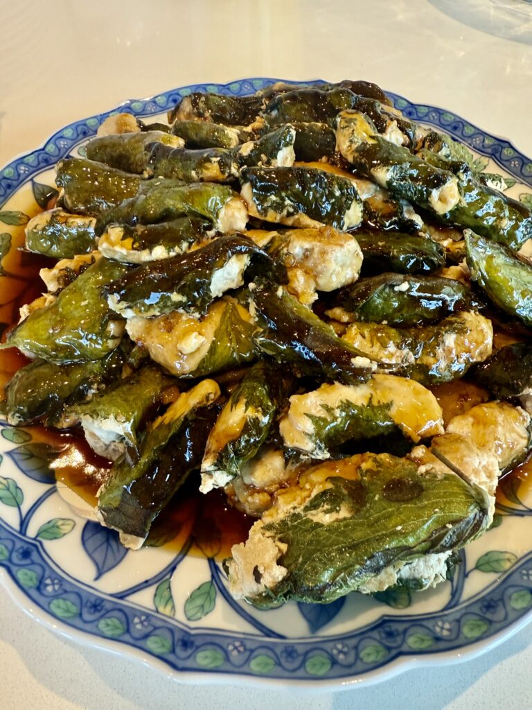 魚のすり身の大葉包みと甘酢餡